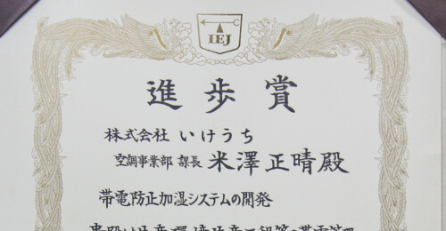 Recibió el premio al logro del Instituto de Electrostática de Japón por el desarrollo del sistema antiestático