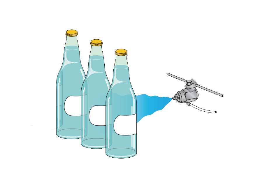 Agregar una fina niebla al proceso de etiquetado de botellas puede asegurar que la etiqueta se adhiera correctamente y evitar arrugas, burbujas o manchas. Nuestras boquillas de aspersión BIM son adecuadas para esta aplicación debido a su atomización fina, con un diámetro promedio de gota de 100 μm o menos.