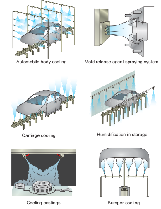 Nuestras boquillas de pulverización industriales y los sistemas relacionados con las boquillas se utilizan en varios procesos de fabricación de la industria del automóvil. Desde la planta de ensamblaje del tren motriz hasta la planta de carrocería, la línea de pintura/recubrimiento, la línea de parachoques, la línea de equipamiento y la electrónica del automóvil, ofrecemos un apoyo personalizado.Our industrial spray nozzles and nozzle-related systems are used in several manufacturing processes in the automotive industry. From the engine powertrain assembly plant to the automobile body plant, the painting/coating line, the bumper line, the outfitting line, the car electronics, we provide customized support.